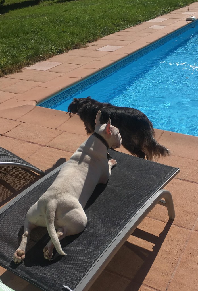 They will soon be joined by Mauser and Gussie who love poking around the garden unsuccessfully hunting hedgehogs and sunbathing by the pool.